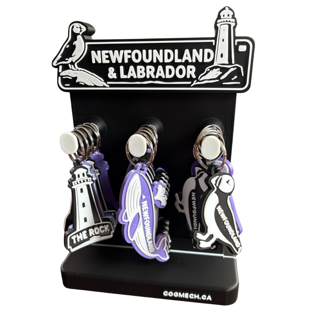 At CogMech Inc., we transform ideas into engineered, market-ready solutions. This recent project — a locally designed and manufactured 3D-printed key tag and retail display system — demonstrates that process from concept to commercialization.